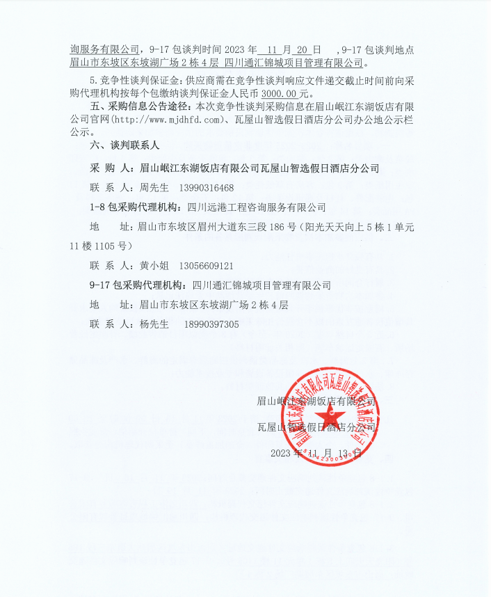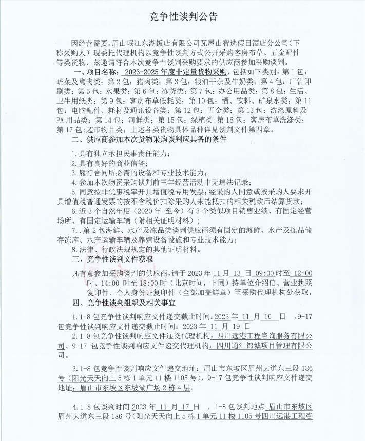 瓦屋山智選假日酒店2023一2025年度非定量采購項(xiàng)目