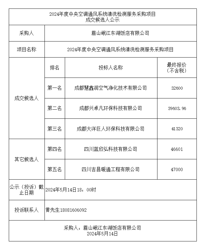 2024年度中央空調通風系統(tǒng)清洗檢測服務采購項目 成交候選人公示